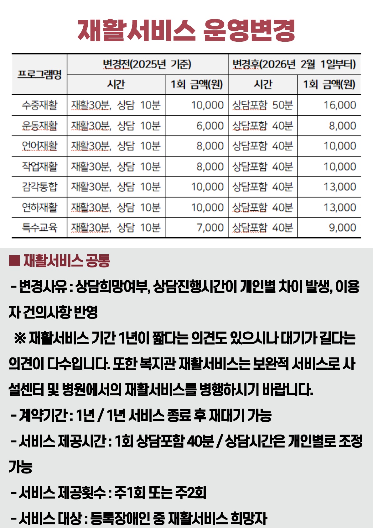 포항시북부장애인종합복지관 재활서비스 운영 변경 사항 공지