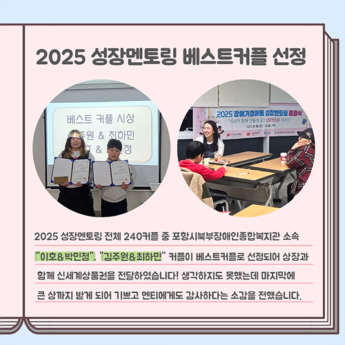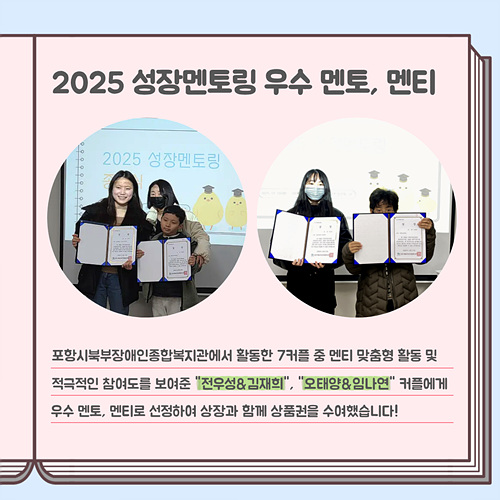 포항시북부장애인종합복지관 성장멘토링 담당자입니다.