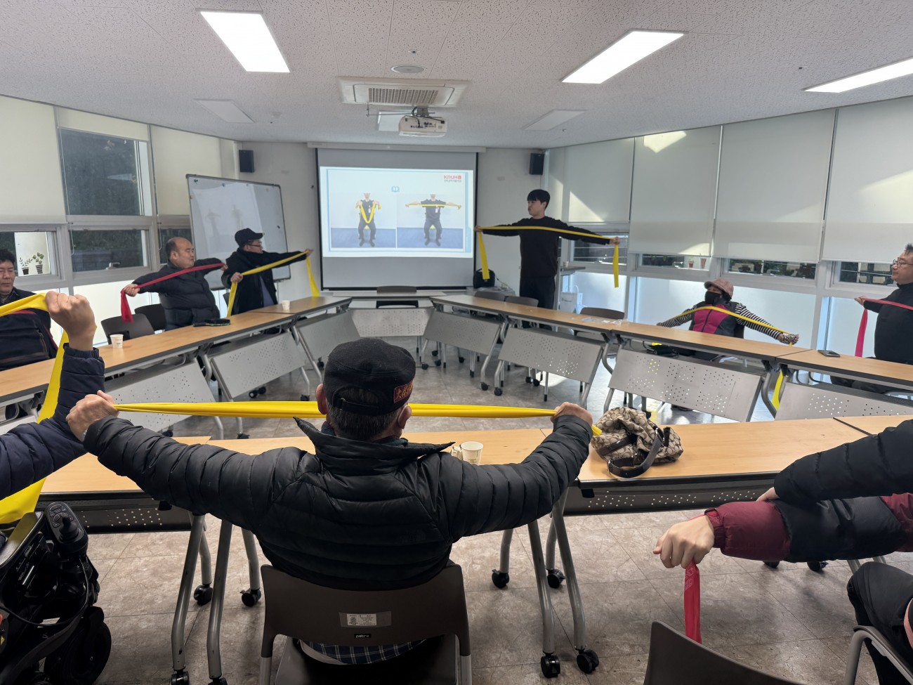 5차 장애인당사자 역량강화교육 실시 최고관리자 0 104 2025.12.09 11:43 2025년 12월 3일 10:30부터 11:30 경상북도권역재활병원 재활치료팀과 연계하여 세라밴드를 활용한 재활운동의 주제로 장애인당사자 역량강화교육을 실시하였습니다.본인 신체상태에 맞게 세라밴드 강도를 달리하여 재활치료팀장님의 직접 자세 교정을 통한 재활운동의 효과로 많은 장애인 당사자분들께서 만족하셨습니다.내년에도 유익한 교육을 제공하기 위해 노력하는 복지관이 되도록 하겠습니다!