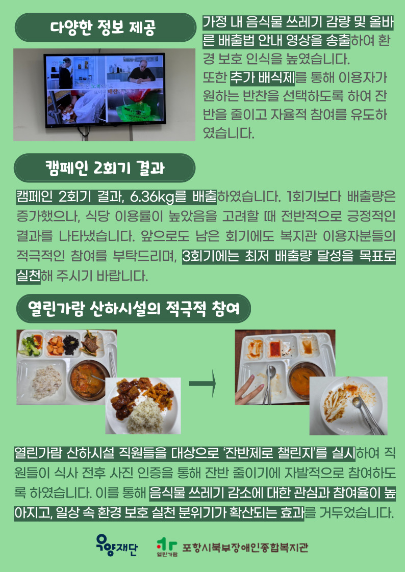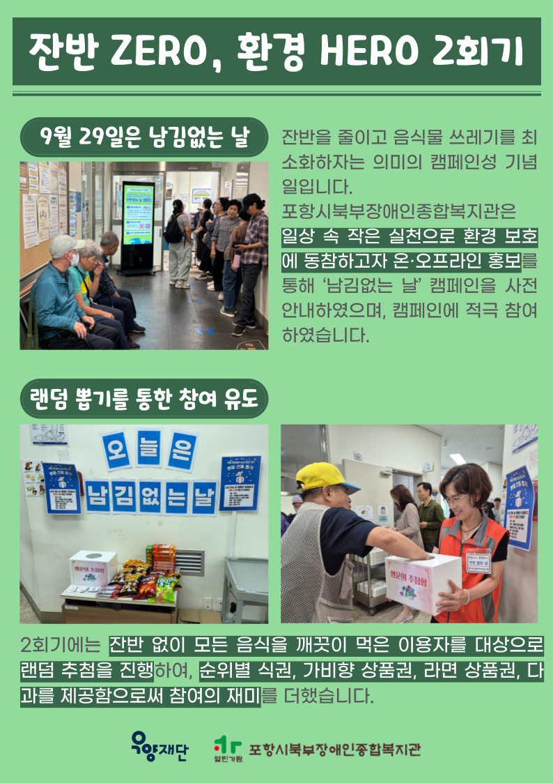 포항시북부장애인종합복지관은 작은 실천이 큰 변화를 만드는 ‘남김없는 날’을 위해 앞으로도 꾸준히 노력하겠습니다.