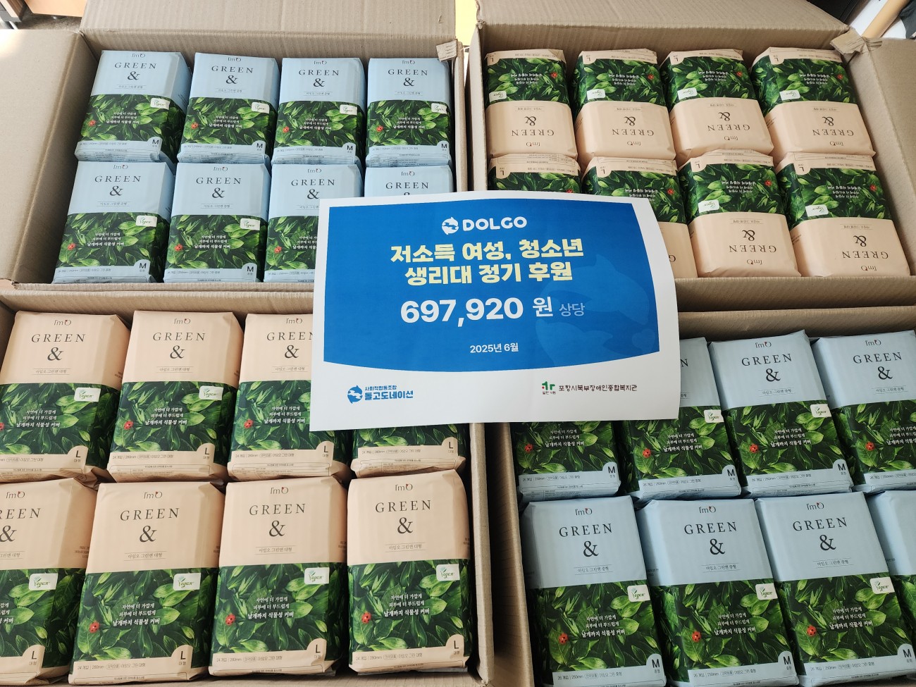 포항시북부장애인종합복지관은 기부 플랫폼 돌고(DOLGO)를 통해 총 697,920원 상당의 생리대를 후원받았습니다.