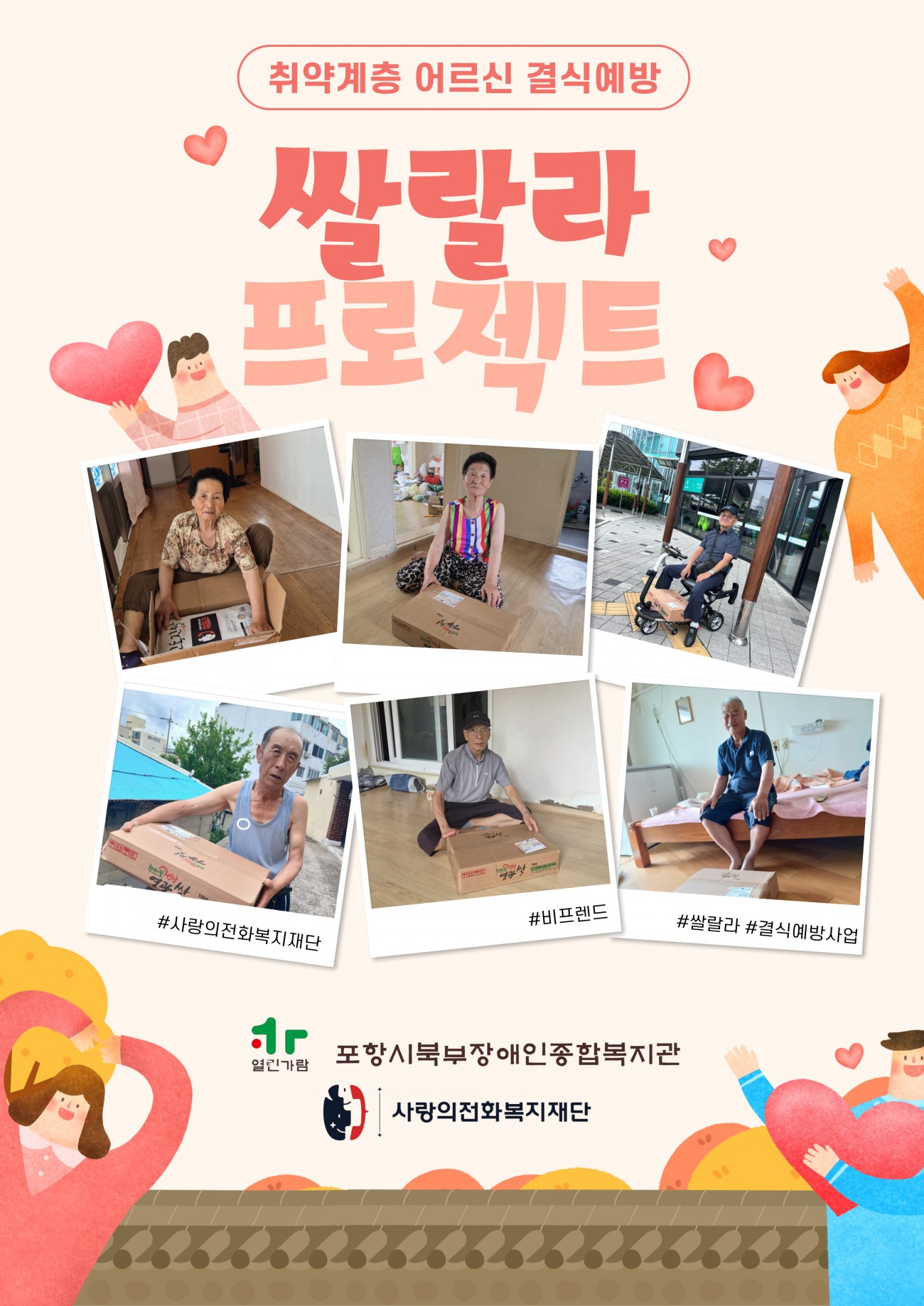 우리 포항시북부장애인종합복지관은 사랑의 전화복지재단에서 진행한 2025년 취약계층 결식 예방 '쌀랄라' 프로젝트에 선정되어 어르신들께 따뜻한 마음을 담은 쌀 지원을 받았습니다.
