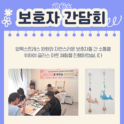 사업에 대한 평가를 진행한 후 보호자님의 양육스트레스 완화 및 보호자들 간의 자연스러운 소통을 위한 글라스아트 체험을 진행했습니다.