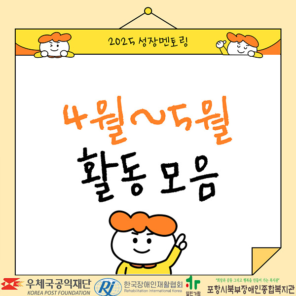 안녕하세요 :) 포항시북부장애인종합복지관 성장멘토링 담당자입니다.
