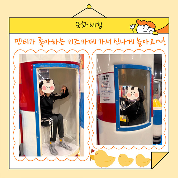 평소 접하기 어려웠지만 멘티가 하고 싶었던 다양한 문화여가생활도 성장멘토링에서는 즐길 수 있습니다.