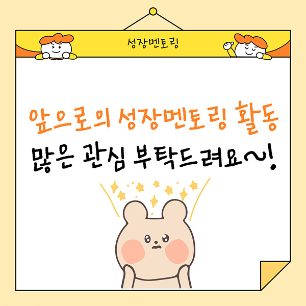조금은 어렵고 하기 싫을 수 있지만 성장멘토링이 끝날 11월에는 멘티가 어떤 모습으로 성장해있을지 기대되지 않으신가요? >_<