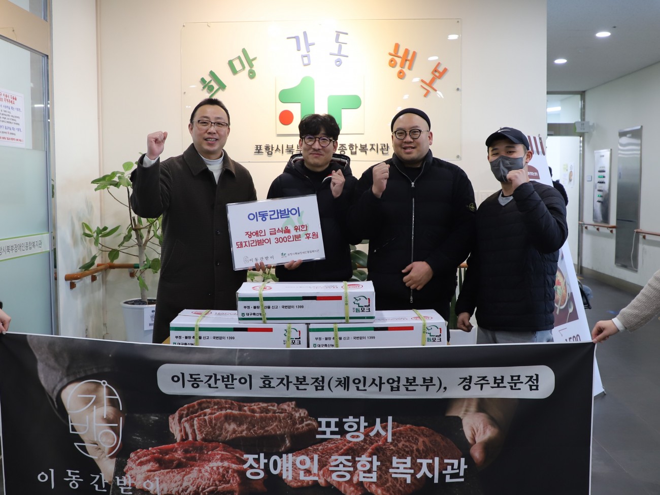 이동간받이 효자본점 후원품 전달식 진행 최고관리자 0 273 2025.01.17 13:06 <이동간받이 효자본점 진행>이동간받이 효자본점에서 장애인 복지를 위해본 복지관에 돼지간받이 250인분을 지원해주셨습니다.소중히 전달해주신 후원금은 장애인 급식에 사용됩니다.