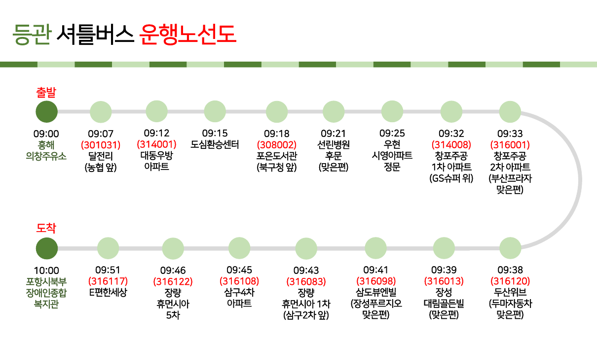 [셔틀버스 운행 시간 조정 안내] 최고관리자 기획운영팀 0 385 2025.03.14 15:28 셔틀버스 등관 운행 시간이 조정됨에 따라 아래 변경된 노선도 확인 후, 셔틀버스 탑승 바랍니다.운행 시간의 교통 상황에 따라 탑승시간 전후 3분 가량의 시간 편차가 발생 할 수 있는 점 양해 바랍니다.셔틀버스를 이용하시는 분들은 아래 등관 셔틀버스 운행 노선도를 참고하셔서 탑승해주시기 바랍니다.안전하고 편리한 이용을 위해 운행 시간을 꼭 확인해 주십시요. ※ 운행 시작일: 25.03.17(월)
