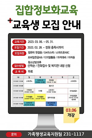 집합정보화교육 교육생 모집 및 수업 시간 변경 안내