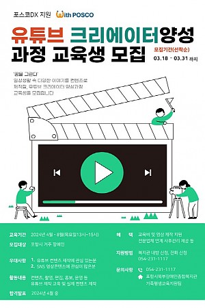 <유튜브 크리에이터 양성과정 교육생 모집>