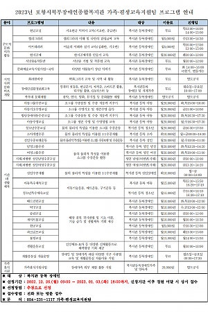 [2023년 포항시북부장애인종합복지관 가족 평생교육지원팀 프로그램 안내]