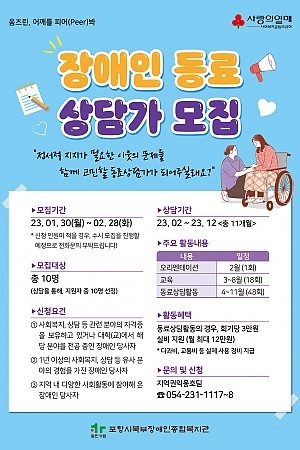 장애인 동료 상담가 모집 안내