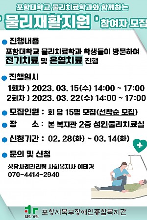 포항대학교 물리치료학과와 함께하는 '물리재활지원' 참여자 모집 안내