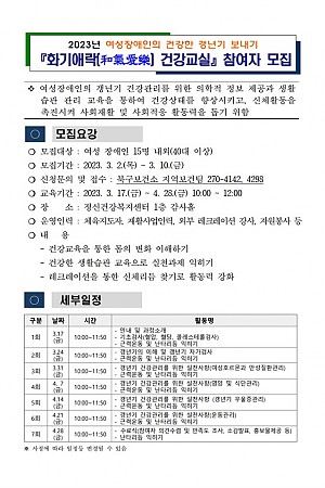 2023년 여성장애인의 건강한 갱년기 보내기 "화기애락 건강교실" 참여자 모집