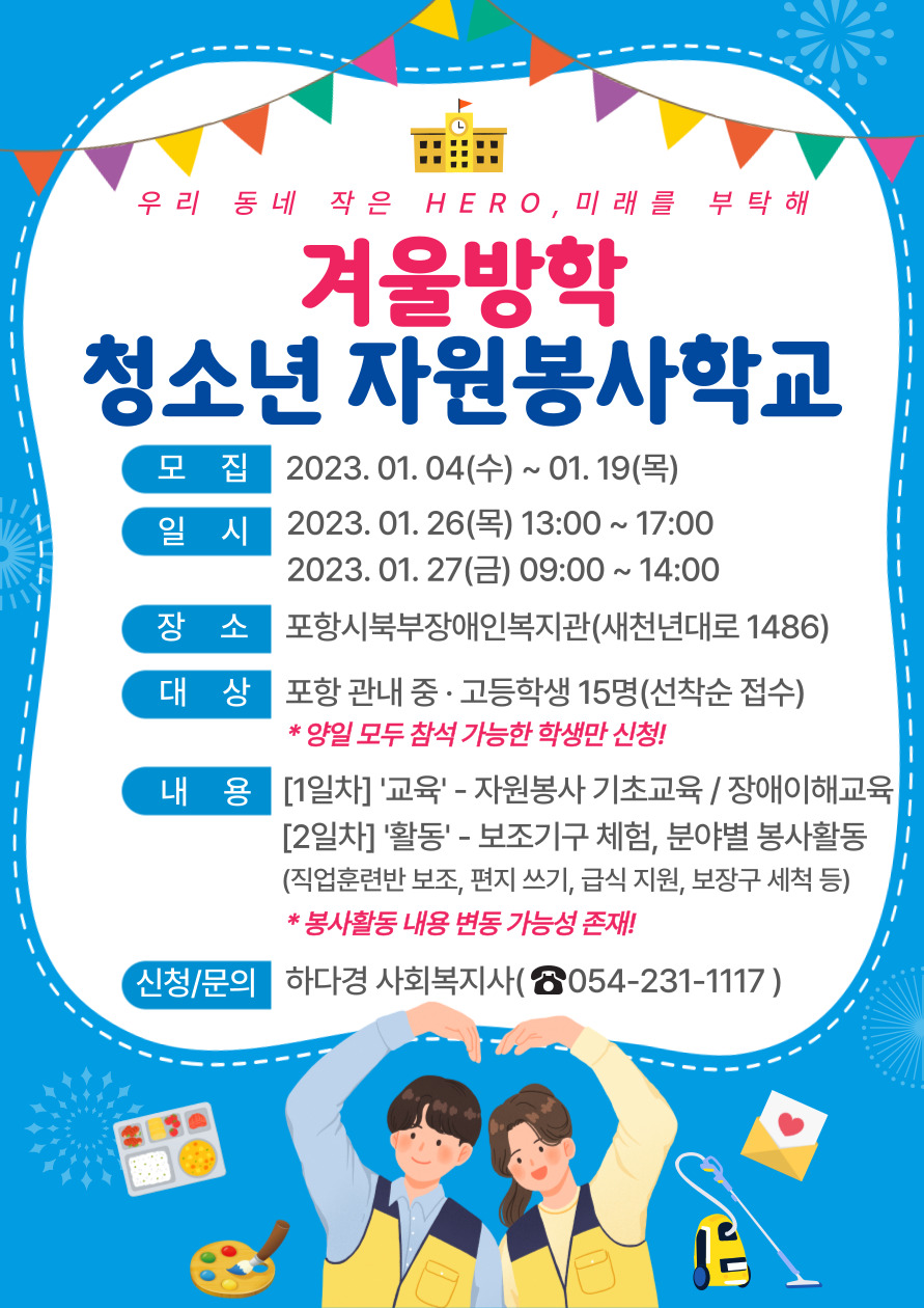 2023년 겨울방학 청소년 자원봉사학교 참여자 모집 안내