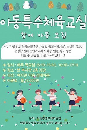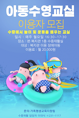 2022년 발달장애아동 수중교실 이용자 모집 안내