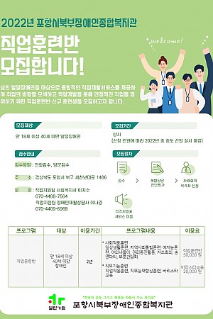 2022년 포항시북부장애인종합복지관 직업훈련반 모집 안내