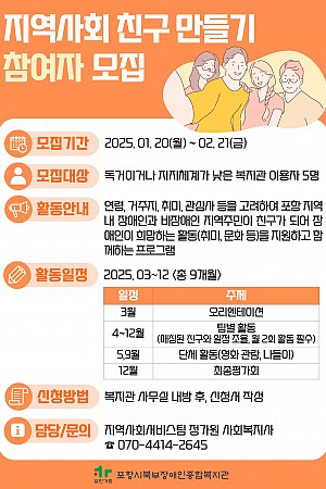 2025년 지역사회친구만들기 참여자 모집