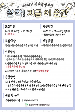 2025년 사진촬영사업 "찰칵! 지금 이 순간" 참여자 모집