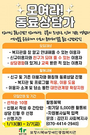 2025 장애인 동료상담 사업 동료상담가 모집