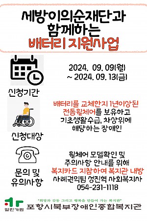 세방이의순재단과 함께하는 배터리 지원사업 안내
