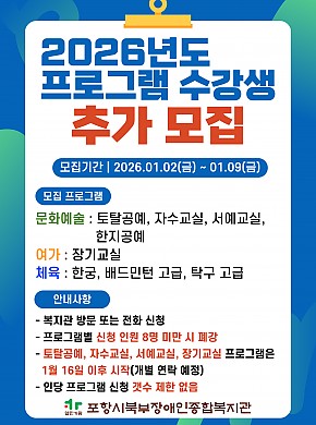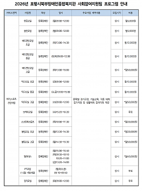 포항시북부장애인종합복지관 2026년 1월 수의계약 내역 공개