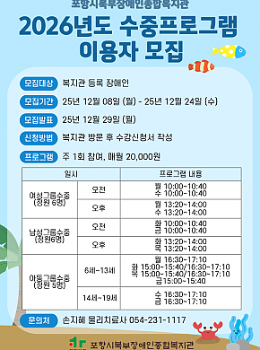 포항시북부장애인종합복지관 발달재활 바우처 수중운동 직원 채용 공고