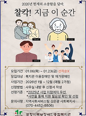 <2026년 사진촬영사업 "찰칵! 지금 이 순간" 참여자 모집>