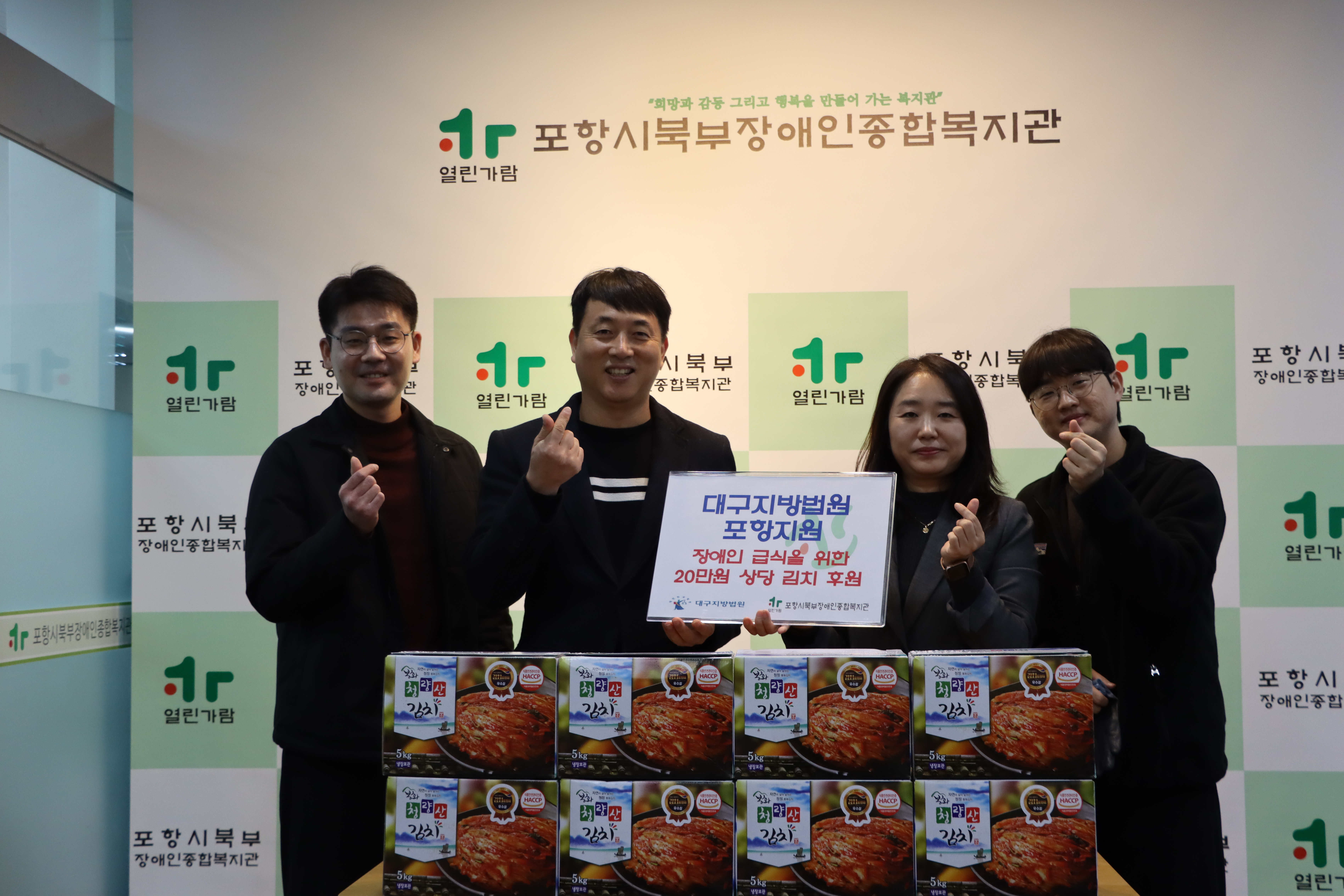 대구지방법원포항지원 후원품 전달식 진행 최고관리자 0 100 2025.12.15 16:06 < 대구지방법원포항지원 후원품 전달식 진행>대구지방법원포항지원에서 장애인 급식을 위한 20만원 상당의 김치를 전달해주셨습니다.소중히 전달해주신 후원품은 장애인 급식에 사용됩니다.