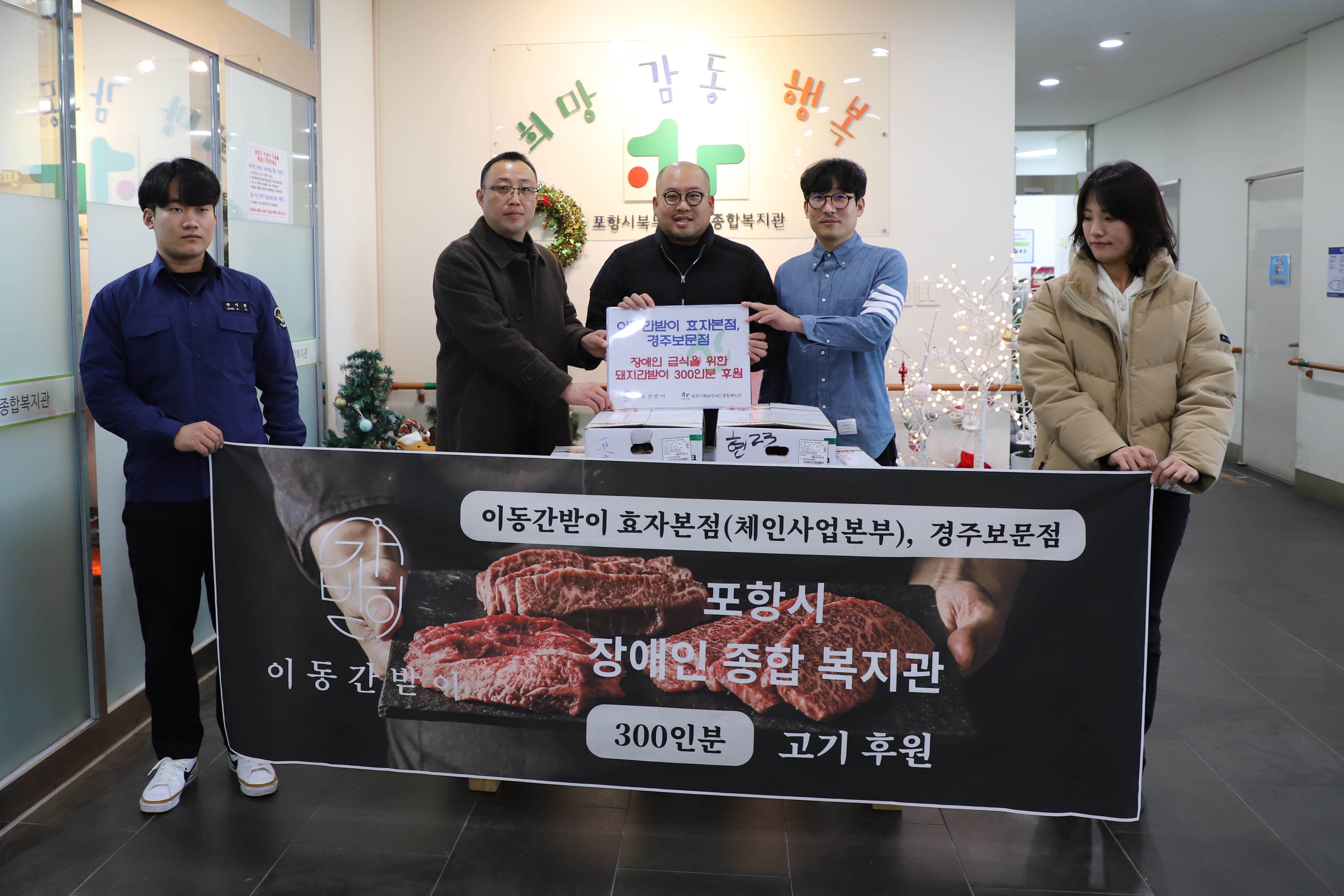이동간받이 효자본점&경주보문점 후원품 전달식 최고관리자 0 325 2024.12.26 14:59 <이동간받이 효자본점&경주보문점 후원품 전달식 진행>이동간받이 효자본점&경주보문점에서 장애인 복지를 위해본 복지관에 돼지간받이 300인분을 지원해주셨습니다.소중히 전달해주신 후원금은 장애인 급식에 사용됩니다.