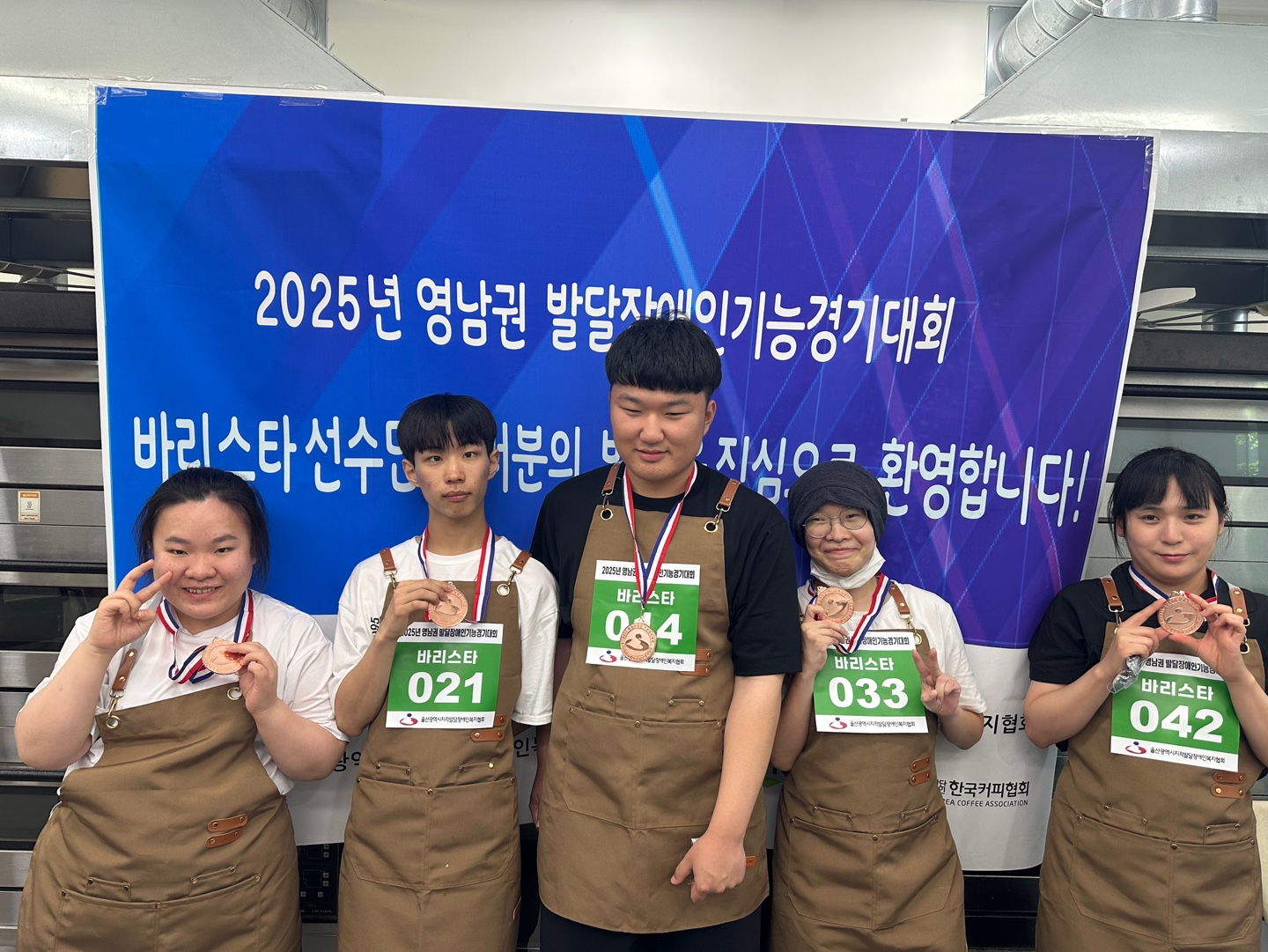 2025년 영남권 발달장애인기능경기대회 최고관리자 0 182 07.29 16:57 [2025년 영남권 발달장애인기능경진대회 참여]지난 6월 울산에서 진행되는 영남권 발달장애인기능경진대회에 가비향일자리,가비향훈련생 5명이 참여하였습니다. 영남권에서 매년 진행되고 있는 이 대회는 올해도 3번째 참여하고 있으며 올해는 입상하지 못하였지만 내년을 도약하며 마무리 지었습니다. 대회를 위해 3개월간 시간을 내어 열심히 훈련한 훈련생들에게 내년이라는 가능성을 기대해봅니다.