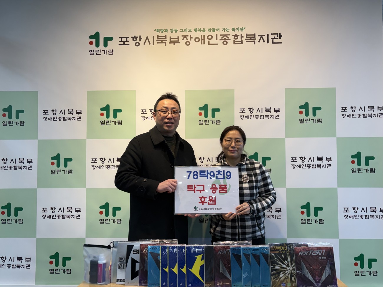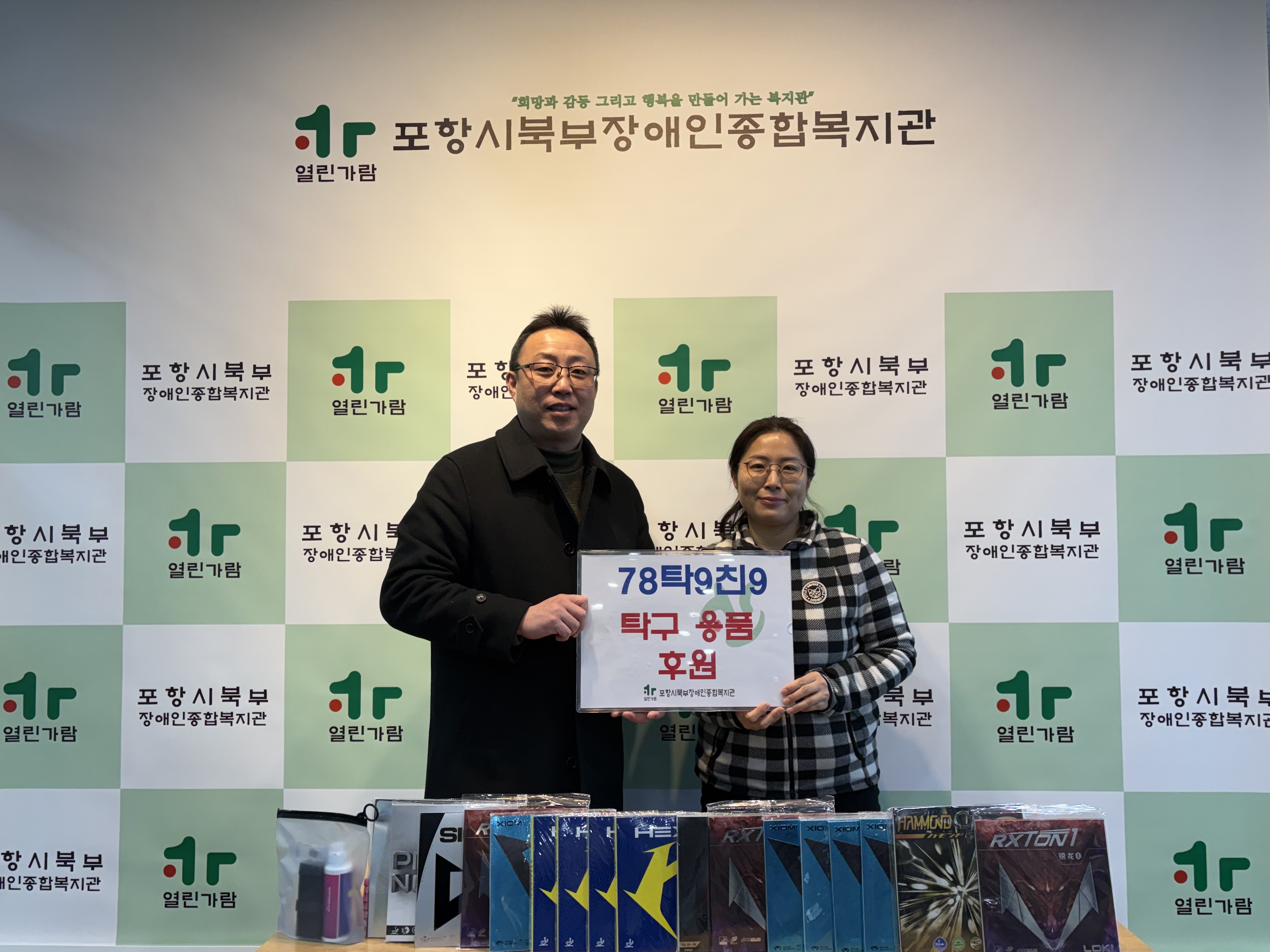 <78탁9친9클럽 후원품 전달식 진행> 최고관리자 0 47 01.22 16:46 < 78탁9친9클럽 후원품 전달식 진행>78탁9친9클럽에서 복지관 탁구 라켓 위한 50만원 상당의 탁구 라바 17개전달해주셨습니다.소중히 전달해주신 후원품은 탁구교실에 사용됩니다.