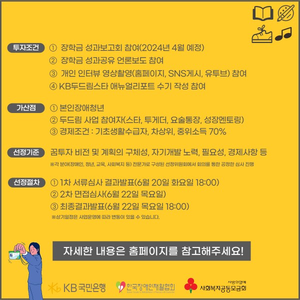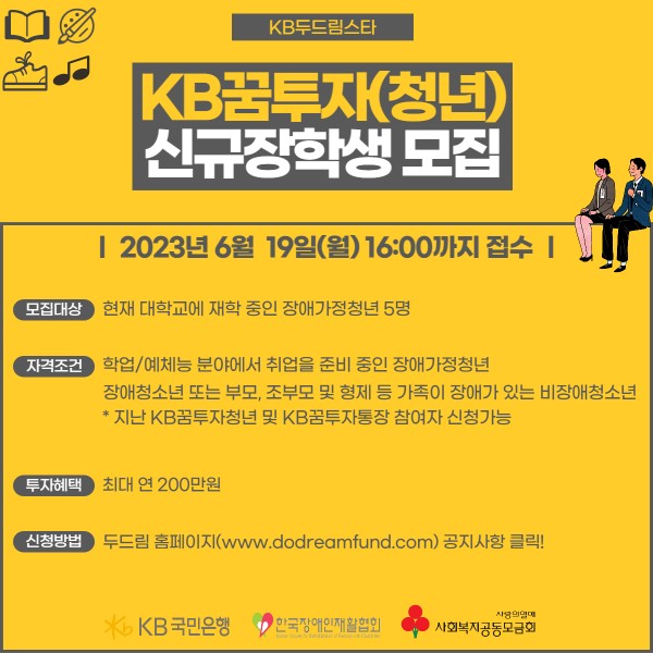 KB두드림스타 꿈투자 청년장학생 모집 안내