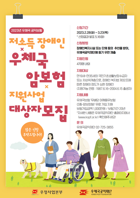 <2023년 저소득 장애인 우체국 암보험 지원사업 안내>