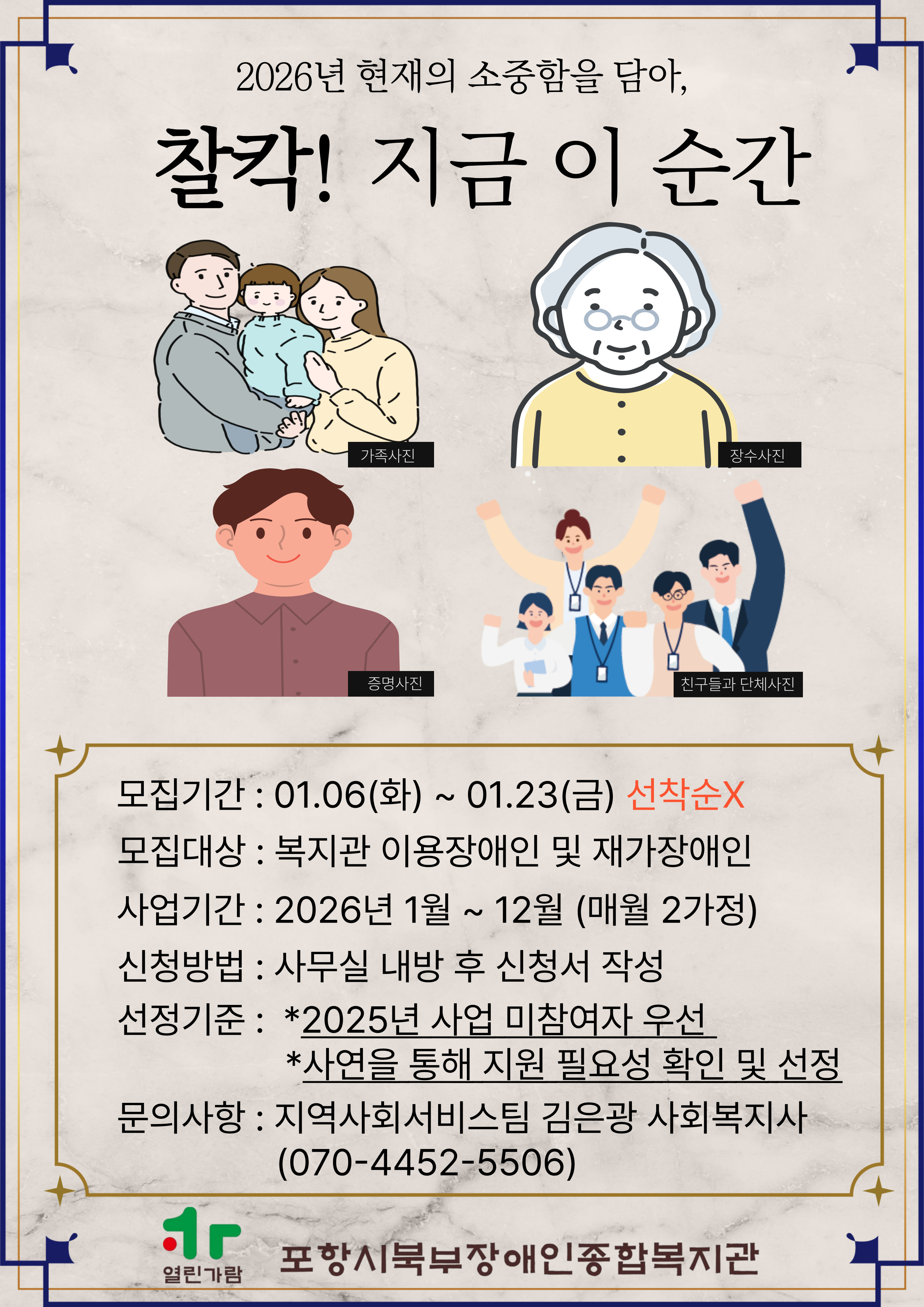 <2026년 사진촬영사업 "찰칵! 지금 이 순간" 참여자 모집>
