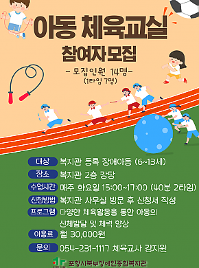 아동 체육교실 참여자 모집