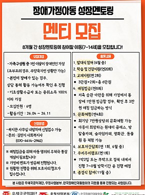 2026 장애가정아동 성장멘토링 멘티 모집
