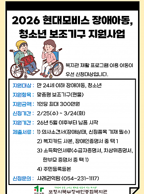 2026 현대모비스 장애아동, 청소년 보조기구 지원사업